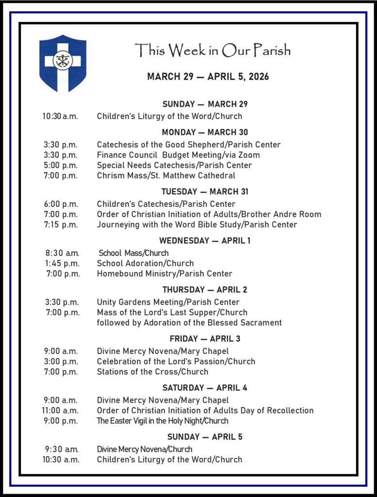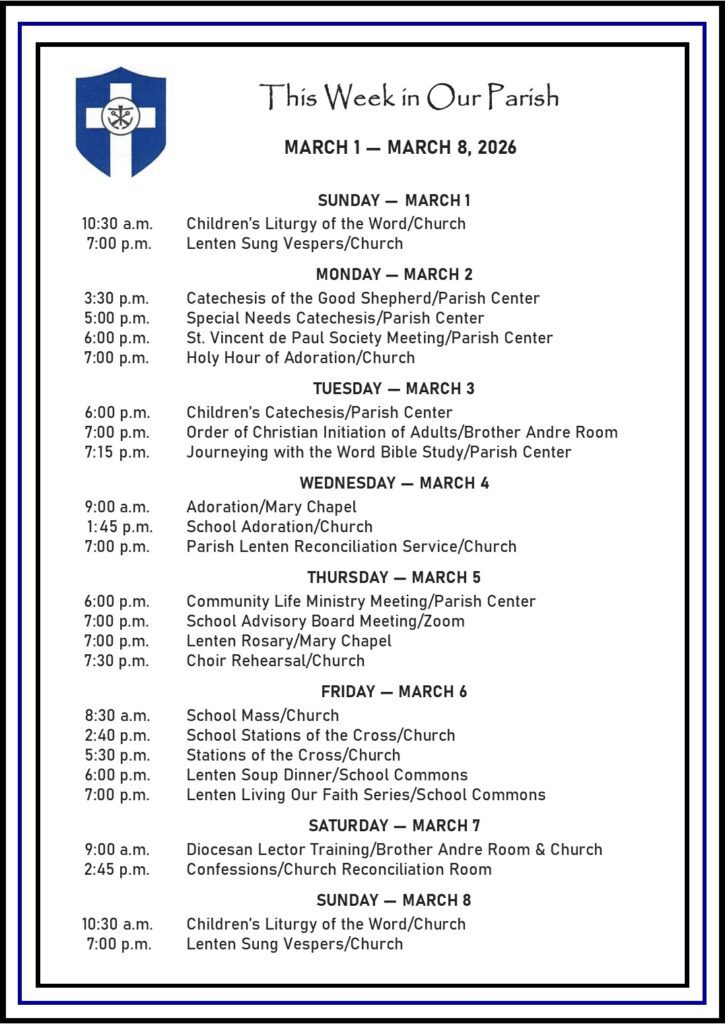 Welcome View Calendar News & Announcements Journeying with the Word, Parish Bible Study Tuesdays, 7:15-8:15 p.m., Smith Parish Center - You are welcome to come to the Bible study, Journeying with the Word - as your schedule permits. Bibles will be…